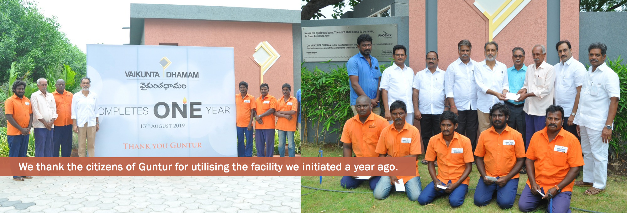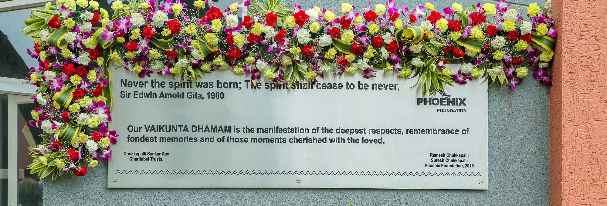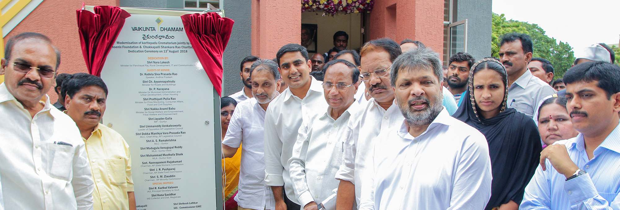 కొరిటెపాడు స్మశాన వాటిక ఆధునీకరించబడినది మరియు మా నాన్న గారైన స్వర్గీయ శ్రీ చుక్కపల్లి శంకరరావుగారి జ్ఞాపకార్ధం మరియు గౌరవార్థంగా వైకుంఠధామంగా పేరు మార్చబడినది. ఇది అతని యొక్క స్ఫూర్తి మరియు మార్గదర్శకత్వం గ్రూప్నుండి ఎన్నో దాతృత్వ కార్యక్రమాలకు మార్గం సుగమం చేసింది. సమాజంలో అంకిత భావం గల మనసు మాత్రమే గొప్ప మార్పును తేగలదని నిరూపిస్తుంది.